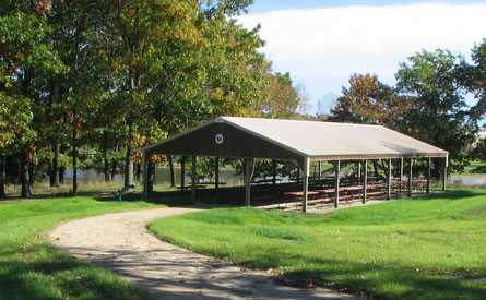 This restored shelter at Nippersink Forest Preserve in Round Lake is surrounded by mature trees that offer lots of shade and is close to the lake for fishing.